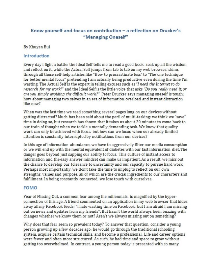 Khuyen Bui, Student an der Tufts University, gewann mit diesem Aufsatz die Peter Drucker Challenge 2015.