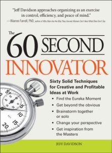 La innovación es una palabra de moda que se usa en el mundo empresarial moderno. La opinión popular apoya la idea de que es esencial para prosperar, o incluso para sobrevivir, en la competitiva economía mundial. En esta rápida lectura, Jeff Davidson, conferencista de la motivación y autor de libros de negocios, esboza sesenta estrategias para estimular sus jugos creativos, desde la lluvia de ideas a la reflexión positiva, de la meditación a la filosofía japonesa del kaizen. Lo irónico es que, aunque el libro es sobre la innovación, cita técnicas conocidas que se basan en enfoques comprobados; y, como el propio Davidson lo explica, muchos de los consejos se traslapan, así que usted puede escoger los más pertinentes para estudiarlos en detalle. getAbstract recomienda esta guía como una introducción a la innovación para el novato en los negocios o como un curso de actualización para todo el que se sienta estancado creativamente en un entorno siempre sediento de ideas nuevas.