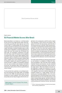 As the European Union’s “wholesale financial center,” the City of London provides financial services for corporations, institutional investors and governments in the EU. Some 358 banks and numerous insurers, institutional investors, specialized finance companies and hedge funds call London home. The City also leads in the growth of fintech companies and hosts the EU’s largest stock exchange and its most established derivatives market. Many service providers to the industry, such as law firms and ratings agencies, have their EU regional offices in London, as do data...