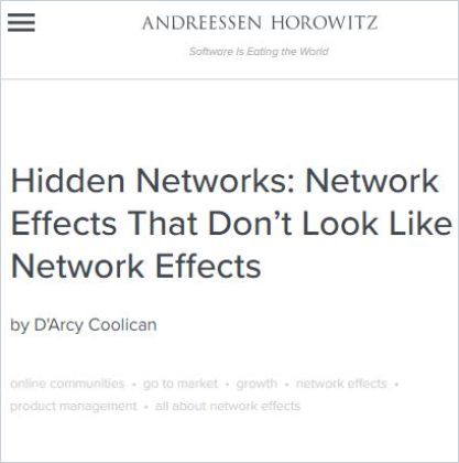 Some network effects (when a network gains more value to its users as more people participate in its platform) don’t show up in the usual metrics. Their hidden nature makes them hard to measure – but they can confer significant long-term competitive advantages. In an insightful article for A16Z.com, D’Arcy Coolican – an Andreessen Horowitz partner and a co-founder of the peer-to-peer lending platform Frank – shines a light on hidden networks, giving useful guidelines for identifying when they’re at work.