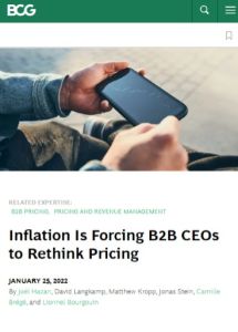 If you think there’s nothing good about inflation (and you could be forgiven for thinking that) then you’re not seeing the silver lining in the current situation. Finally, B2B pricing practices are taking center stage in boardrooms around the world, and the subject might finally get the attention it deserves. It’s not your grandpa’s business world anymore, and pricing needs to be as dynamic as the volatility that surrounds you and your company. This report from the Boston Consulting Group offers guidelines to help your company navigate B2B inflation.