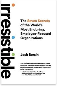 Josh Bersin chose “irresistible” to describe companies that maintain employee engagement over the long term – not just during their growth phase. These companies have organizational endurance, thanks to four factors: They pursue a compelling, timeless mission. They support employees’ productivity – and as a result, enjoy excellent growth and business outcomes. They make employee engagement a foundational value. And, finally, they support employees’ happiness by building trust, valuing fairness and creating social cohesion within the organization.