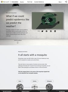 What if science could predict disease threats the way it can predict the weather? Mosquitos are responsible for 600 million disease cases a year because they transmit pathogens from the environment to humans. Microsoft’s Premonition project created robotic “smart traps” to lure, capture and analyze mosquito DNA. When networked, these traps can “map the biome” and look for genetic anomalies and potential pathogens, before they reach the human population. To date, Premonition has analyzed 80 trillion base pairs from these environmental samples. Working with industry partners and public health authorities, Microsoft intends to “change the paradigm” from a reactive to a proactive model for tracking threats.