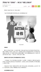Du Xiao and Cao Mingzhu, reporters at The Legal Daily, provide a broad overview of how the Chinese perceive paternity leave and what social environment shapes their opinions. The authors assume familiarity with societal norms such as the one-month confinement period for new mothers after giving birth, the decades-long One Child Policy which ended in 2015, the existence of live-in maternity care centers as well as the current practice of providing maternity leave but not necessarily paternity leave which can contribute to gender bias in the workplace. As of October 2016, 29 out of 32 provinces or municipalities formally stipulate paternal leave, ranging from 7 to 30 days depending on the province. Most of these provinces opt for 15 days of paternity leave. Although published by The Legal Daily, the article dedicates more space to covering the opinions of interviewees (all of whom are residents of Beijing) than to outlining the finer details of legislation related to this topic. getAbstract recommends the article to those interested in gender roles in China.