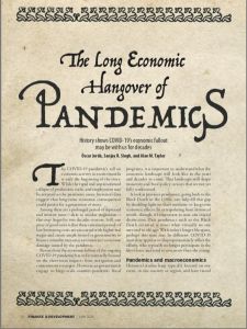 While the global economy will revert to some sort of normal as the effects of COVID-19 recede, the damage done will nonetheless cast a pall for years to come. In this sobering article, economists Òscar Jordà, Sanjay R. Singh and Alan M. Taylor look back at nearly seven hundred years of pandemics in Europe and find that the crises’ financial effects persisted long after their health impacts subsided. While current demographic and medical circumstances differ from those in the past, the economic aftermath of COVID-19 may well be long and arduous.