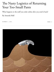 Few businesspeople care to discuss – and consumers rarely give a second thought to – the economic and environmental costs of product returns. Writing in The Atlantic, Amanda Mull explains how the “free shipping, free returns” model of online commerce enables customer overbuying, resulting in a glut of returned merchandise and logistical burdens on businesses. Retailers discard or destroy up to 25% of returns rather than restock, resell or donate them.