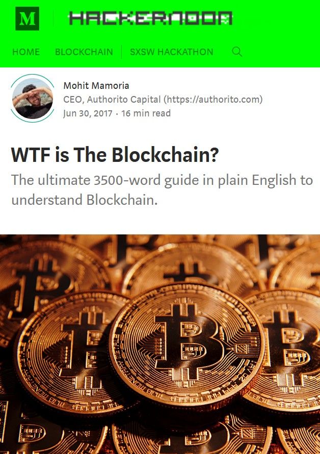 The terms “bitcoin” and “blockchain” flooded headlines after the value of the cryptocurrency more than tripled in the fourth quarter of 2017. But if you are not a currency trader or a technology expert, chances are you may not be fully familiar with their underlying concepts. Mohit Mamoria, the CEO of cryptofund Authorito, helps laypeople understand blockchain in this easy-to-follow blog post on Medium.